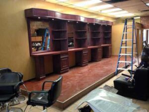 Glass Work: Specialized glass integration for cabinets, displays, and custom features.